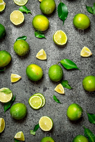 Спелые лаймы с зелеными листьями