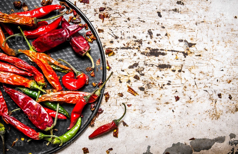 Сушеный перец чили на подносе