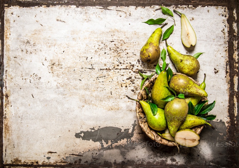 Груши в корзине с листьями