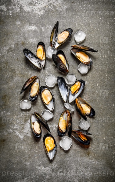 Свежие мидии со льдом
