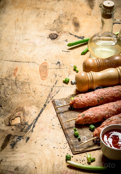 Сырой кебаб с томатным соусом и зеленым луком