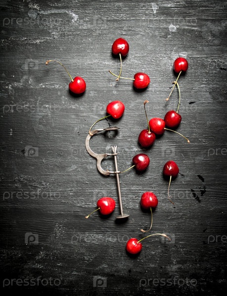 Красная вишня с металлическим инструментом
