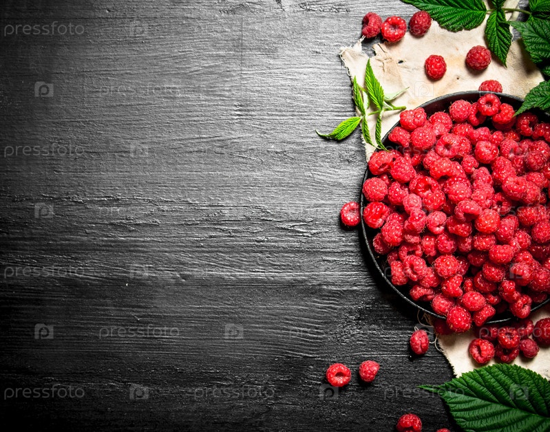Дикая малина с листьями