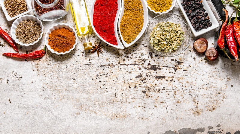 Большой набор специй и трав в чашках