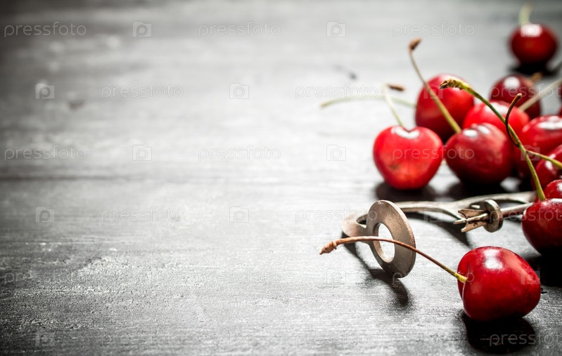 Красная вишня с металлическим инструментом