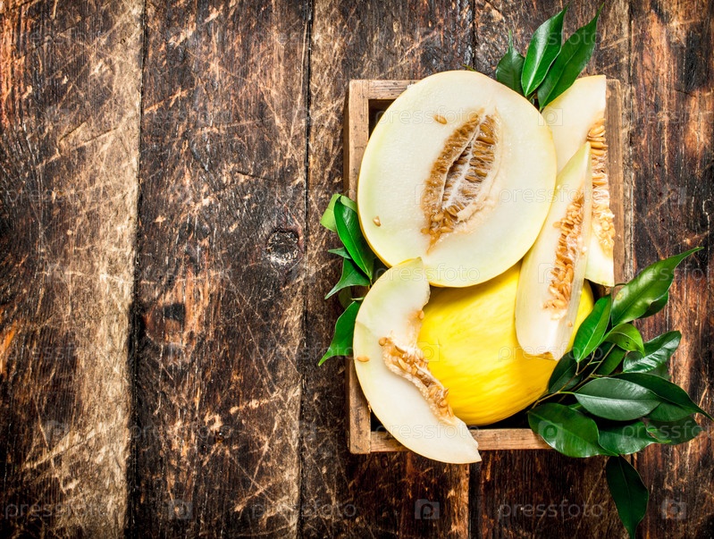 Кусочки свежей дыни в старой коробке