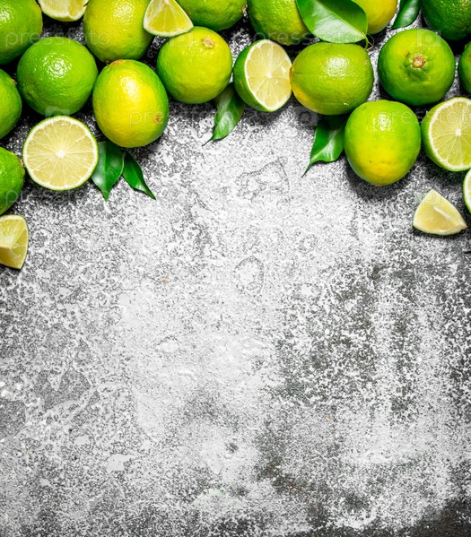 Спелые лаймы с зелеными листьями