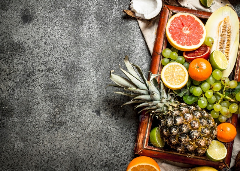 Спелые фрукты в старом подносе