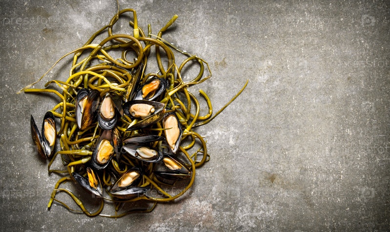 Свежие мидии с черемшой