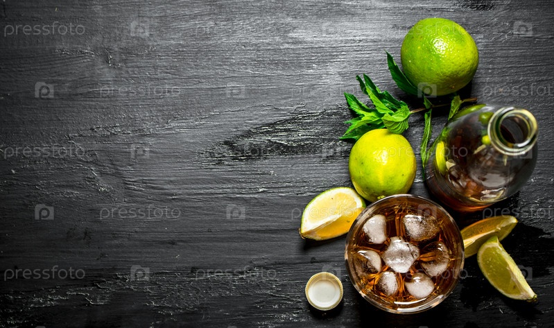 Ром со льдом, мятой и лаймом