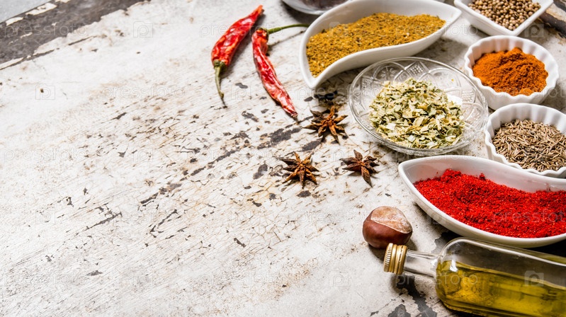 Большой набор специй и трав в чашках