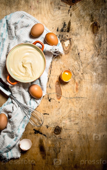 Майонез в миске с ингредиентами