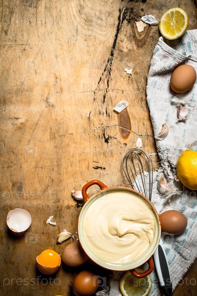 Изготовление майонеза с яйцами, чесноком и лимоном