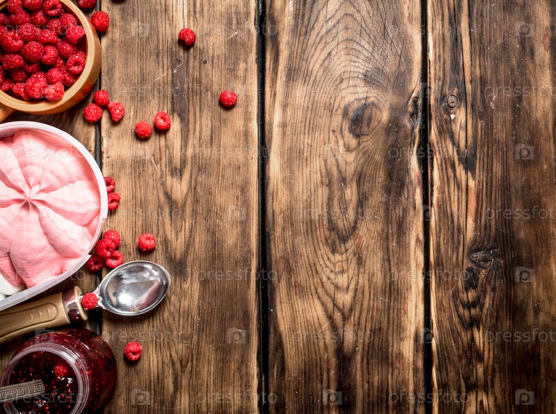 Малиновое варенье с мороженым и лесными ягодами