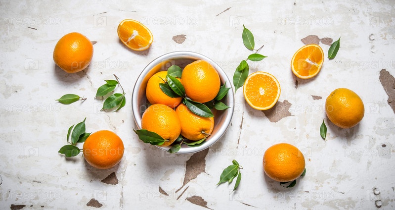 Свежие апельсины с листьями