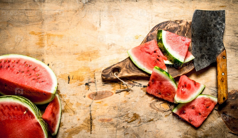 Нарезанный арбуз с топором