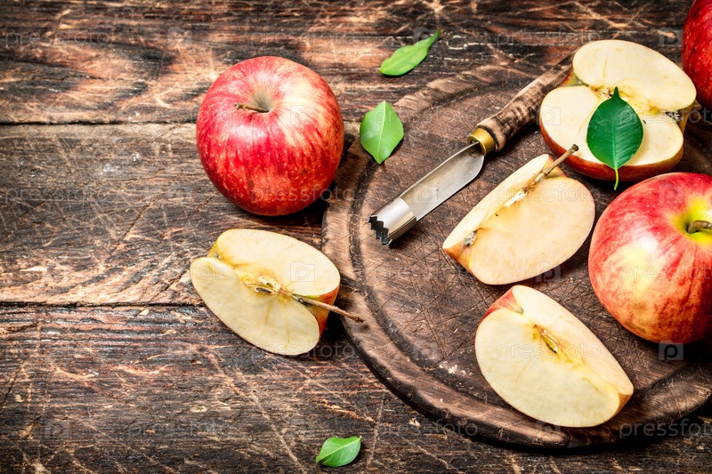Свежие яблоки на разделочной доске