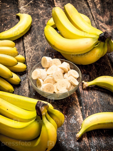 Свежие бананы с нарезанными кусочками в миске