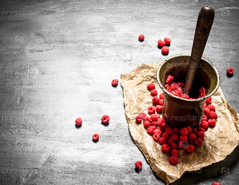 Малина в ступке с пестиком