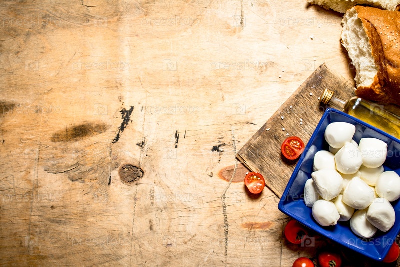Моцарелла со свежим хлебом и помидорами