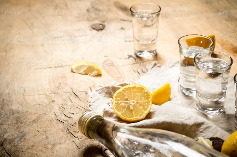 Бутылка водки с рюмкой и лимоном