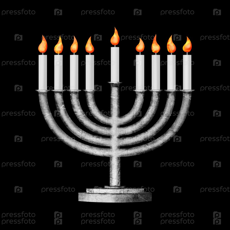 Ханукия или менорат Ханука - ханукальный светильник на черном фоне