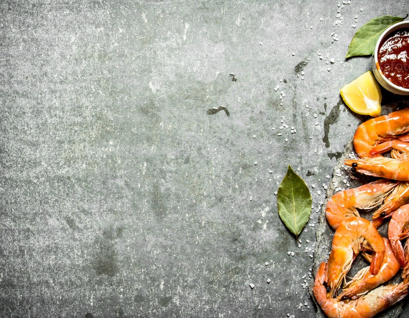 Креветки с соусом, лимоном и солью