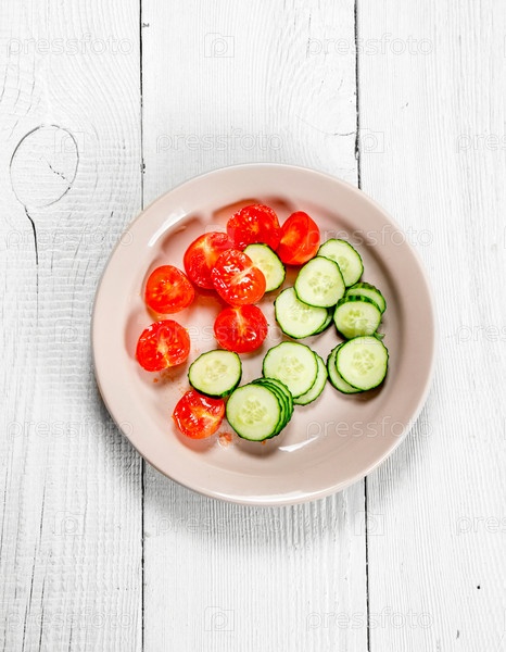 Кусочки томатов и огурцов в блюде