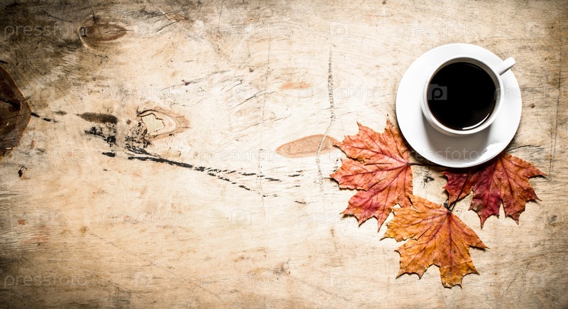 Чашка горячего кофе с осенними листьями