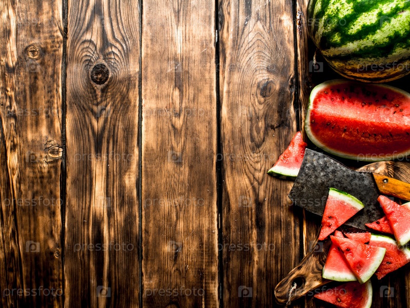 Нарезанный арбуз с топором