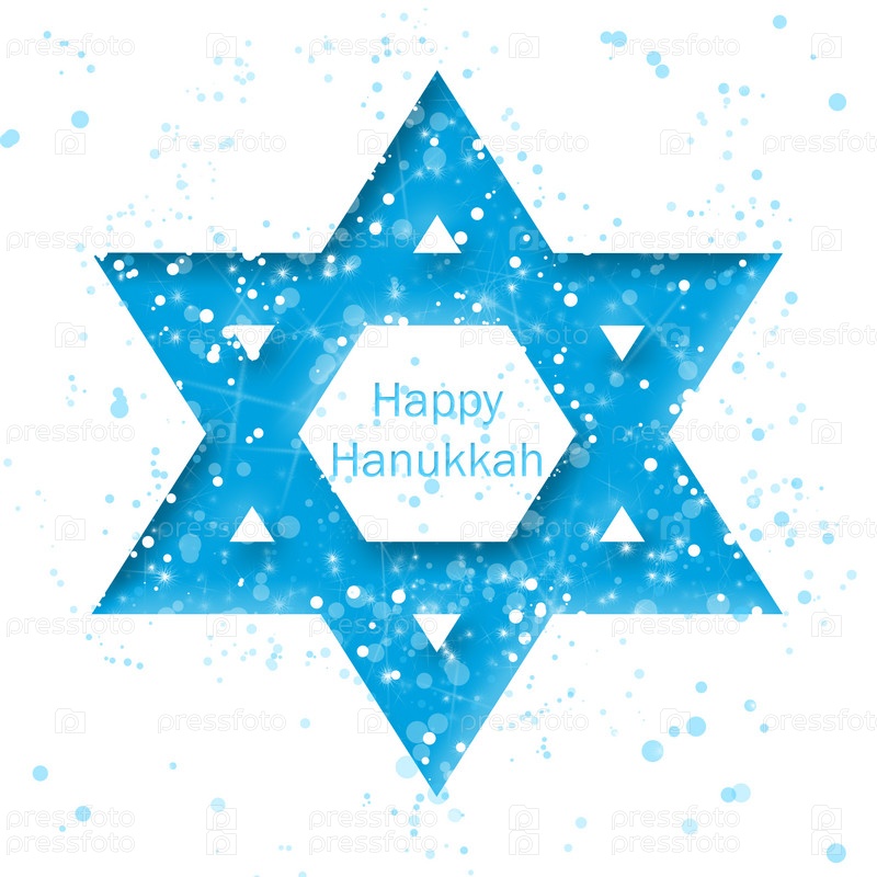 Текст "Счастливой Ханкуи" внутри звезды Давида на белом фоне