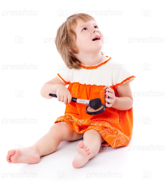 Милая девочка готовится к макияжу