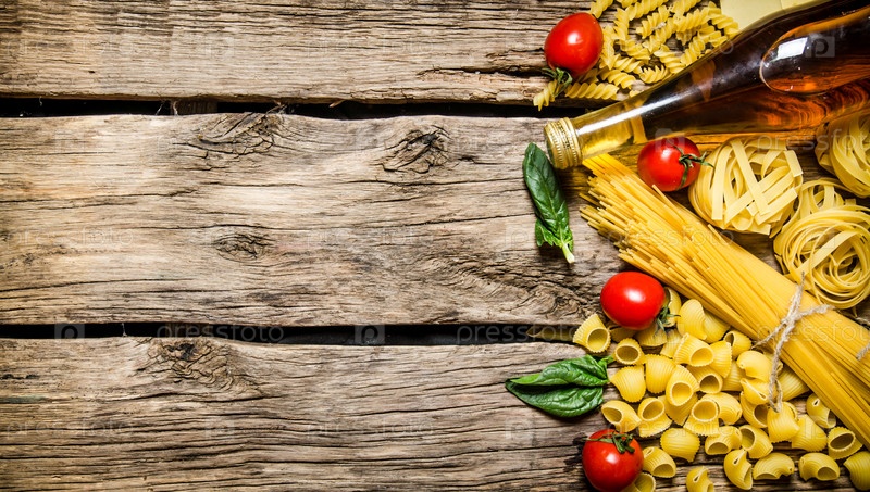 Макаронные изделия и спагетти с помидорами, зеленью и оливковым маслом