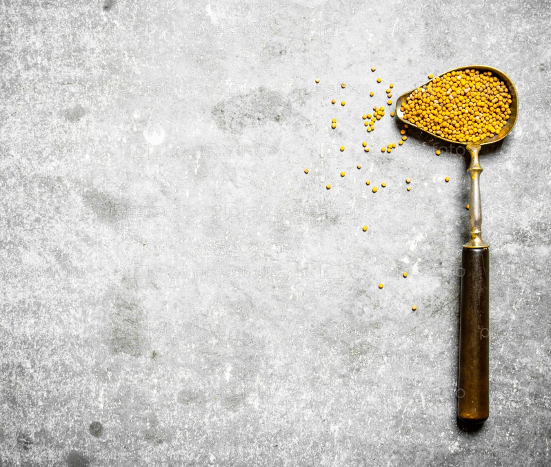 Семена горчицы в старой ложке
