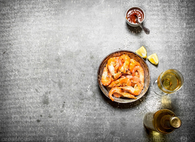 Креветки с белым вином и лимоном