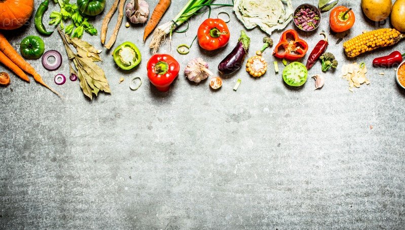 Свежие сырые овощи и специи
