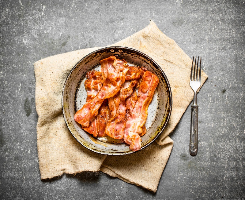 Жареный бекон в сковороде