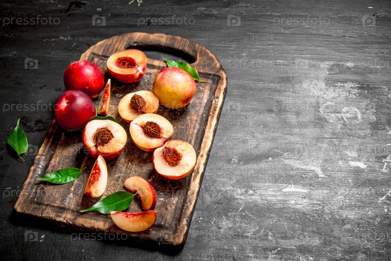 Спелые персики на разделочной доске