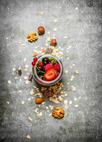 Ягоды с мюсли и орехами