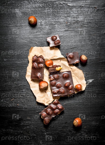 Куски шоколада с цельными лесными орехами
