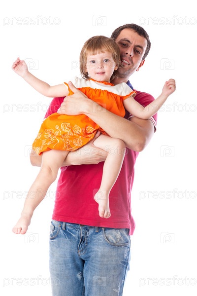Маленькая девочка с отцом в студии