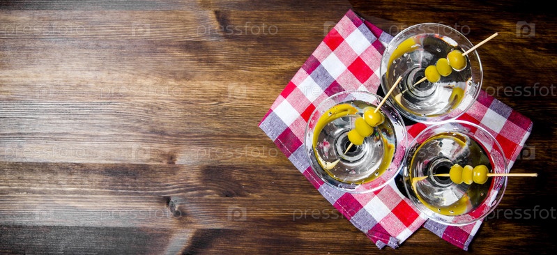 Мартини с оливками на деревянном столе