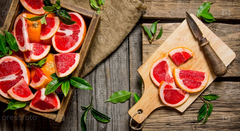 Ломтики грейпфрута на доске
