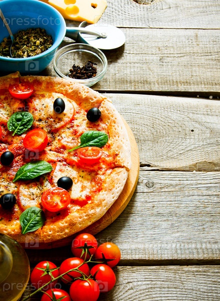 Вкусная пицца, помидоры и другие ингредиенты