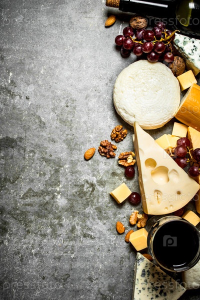 Кусочки сыра с красным вином и орехами