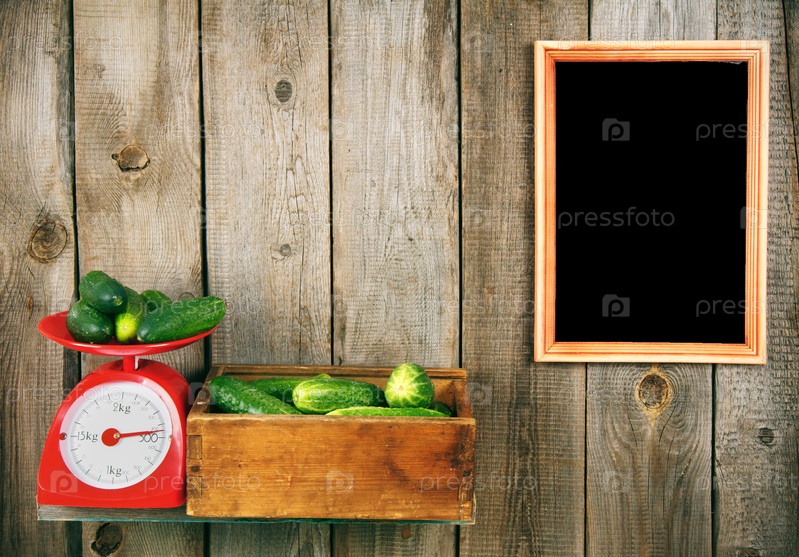 Огурцы на весах и в коробке