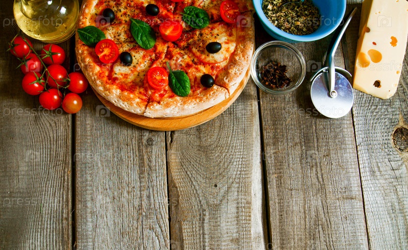 Вкусная пицца, помидоры и другие ингредиенты