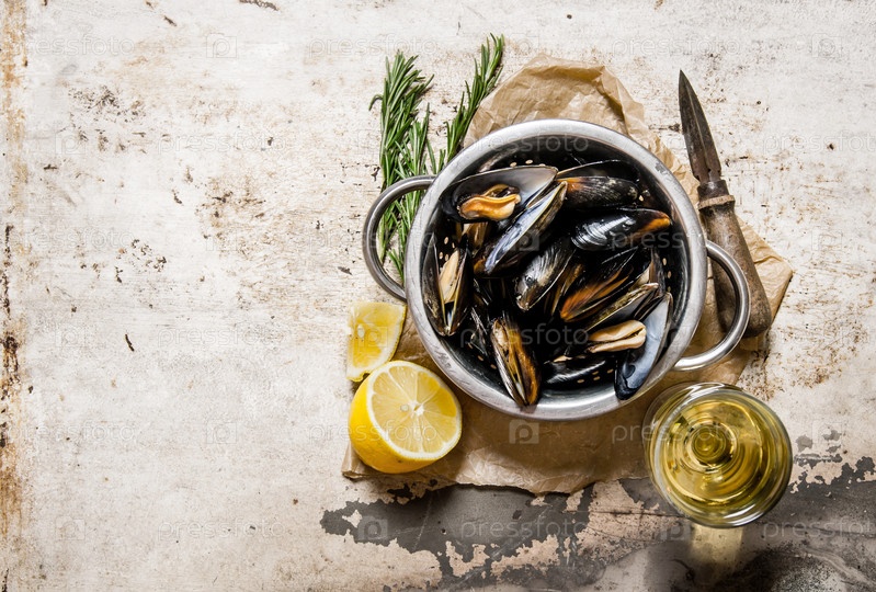 Вино со свежими моллюсками, лимоном и розмарином