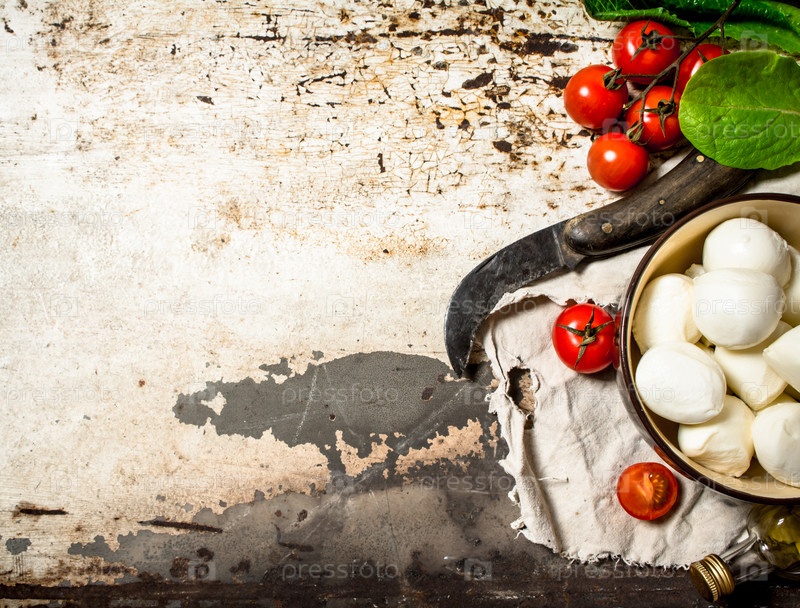 Сыр моцарелла, помидоры