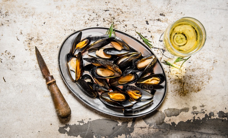 Вино и мидии